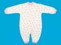 Комбинезон из тонкого трикотажного полотна (кулирка) с воротником-стойкой. Рукава длинные застёжка на кнопки по переду и по внутреннему шву (для удобной смены подгузника).