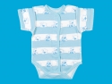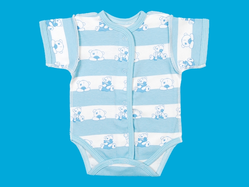 Полукомбинезон (боди) из трикотажного полотна (интерлок высокого качества "пенье"). Рукав короткий, застёжка – кнопки по переду и по низу изделия (для удобной смены подгузника). Швы на лицевую сторону.
